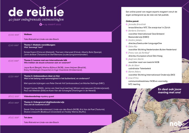 A.s. woensdag (24 maart 2021) neem ik deel aan een discussie over de toekomst van (digi)taalonderwijs als deel van deze live uitzending. Het evenement wordt ter gelegenheid van het 40 jaar bestaan van het Stichting Nederlands Onderwijs in het Buitenland georganiseerd. Ik ga het vooral hebben over de overeenkomsten van meertalige kinderen in het buitenland en meertalige kinderen hier in Nederland en hoe belangrijk het is om al hun talen te waarderen en een plek te geven in het onderwijs.