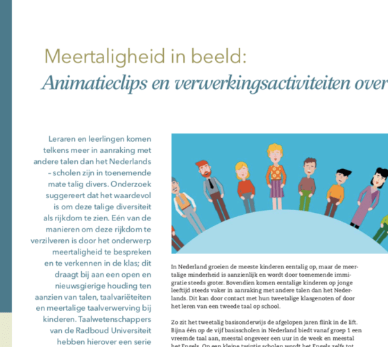 Afgelopen jaar hebben Gerrit Jan Kootstra en ik een drietal animatieclips over meertaligheid ontwikkeld voor basisschoolleerlingen en hun leerkrachten. In de laatste editie van Tijdschrift Taal introduceren we in dit artikel deze clips, bespreken we onderliggende wetenschappelijke achtergronden en doen we suggesties voor verwerkingsactiviteiten die bij de animatieclips passen. De clips staan gewoon op YouTube […]